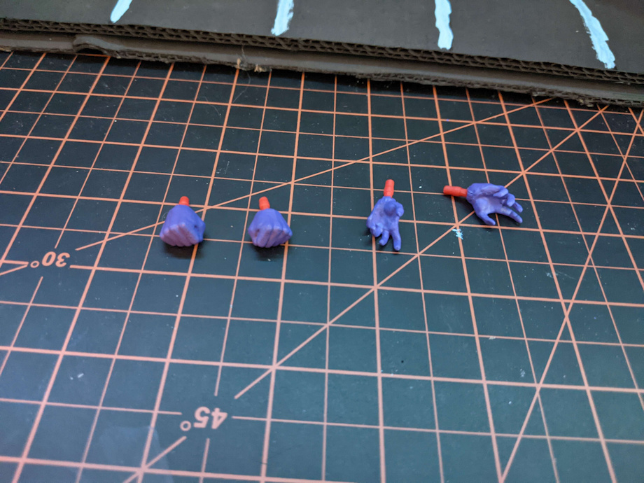I got some purple model color paint, the only shade of purple I could find and just repainted the hands. Sadly they're not exactly the right shade and not matching the rest of the body, and I expected this, so again it will be another unfinished project that'll do for now.