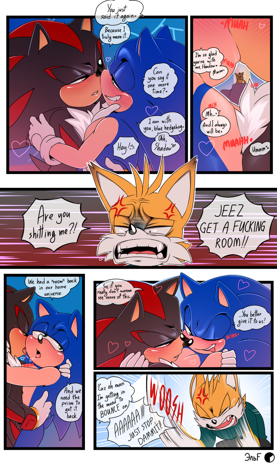 Shadow has the cutest little bottom in that last panel in Sonic's arms!!