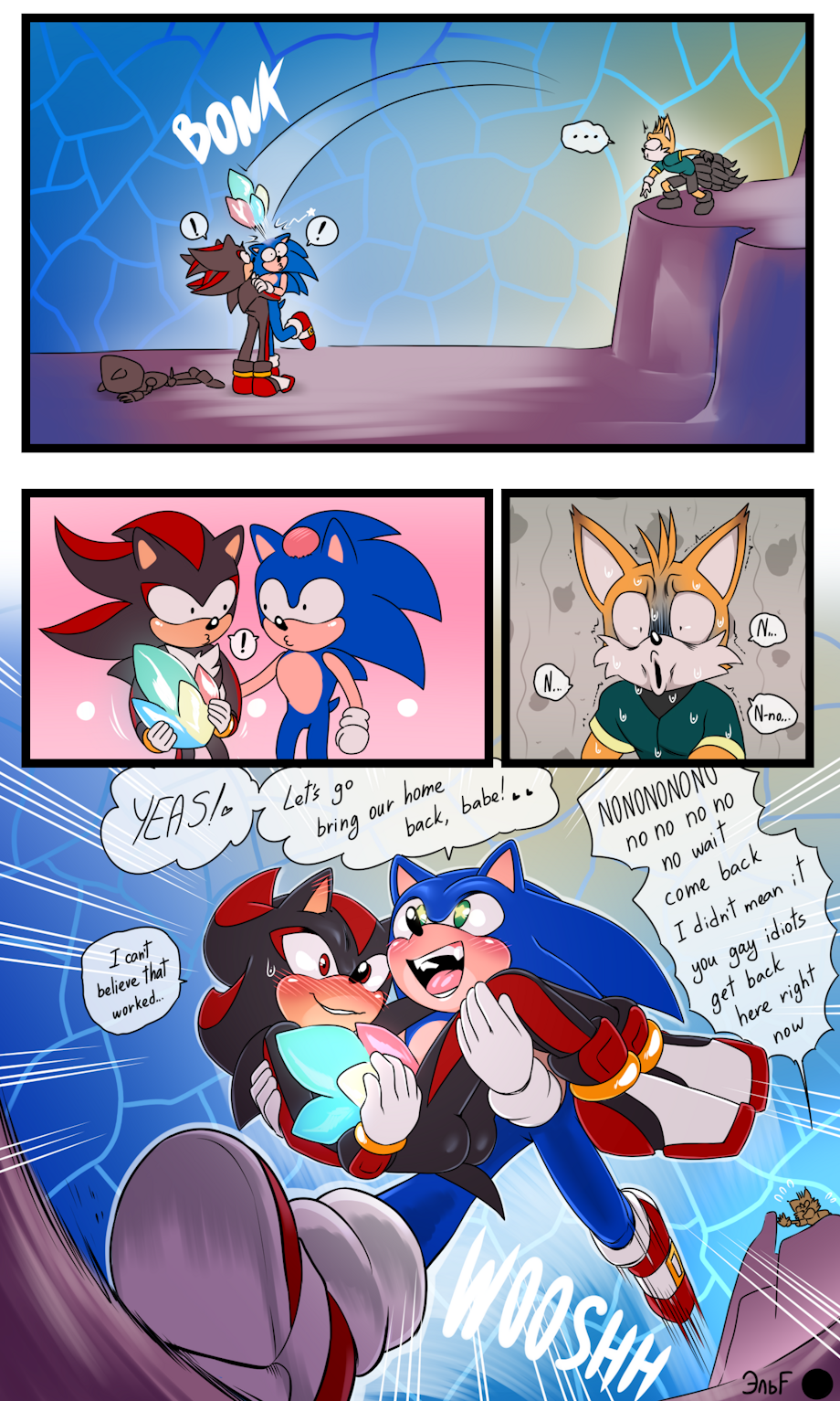 Shadow has the cutest little bottom in that last panel in Sonic's arms!!