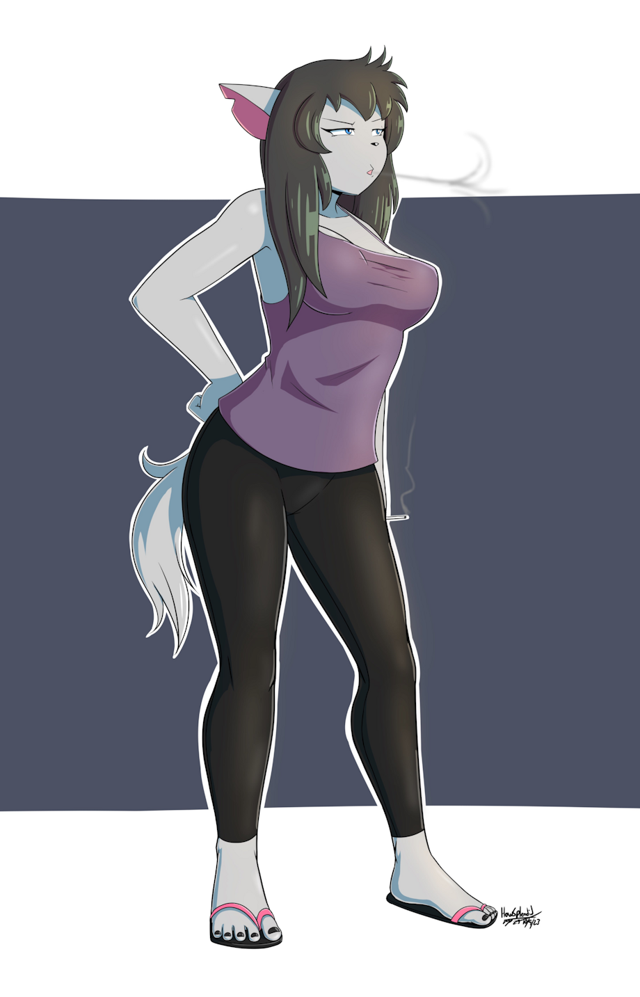 Got a suggestion from Mr. Blue to draw Zoe in yoga pants and flip flops