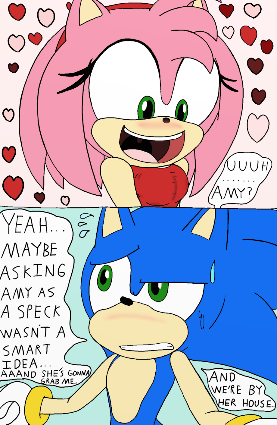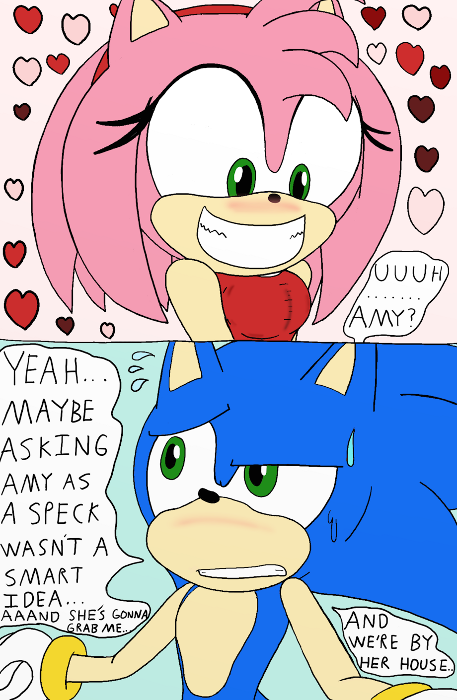 Sonic quickly realized that this is Amy he's dealing with so he should know that she's not letting him get away since he's so small now.