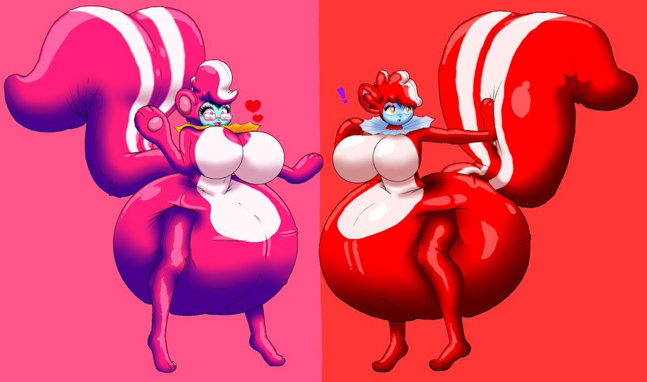 Matt and Luigi in latex padded skunk suit! :3