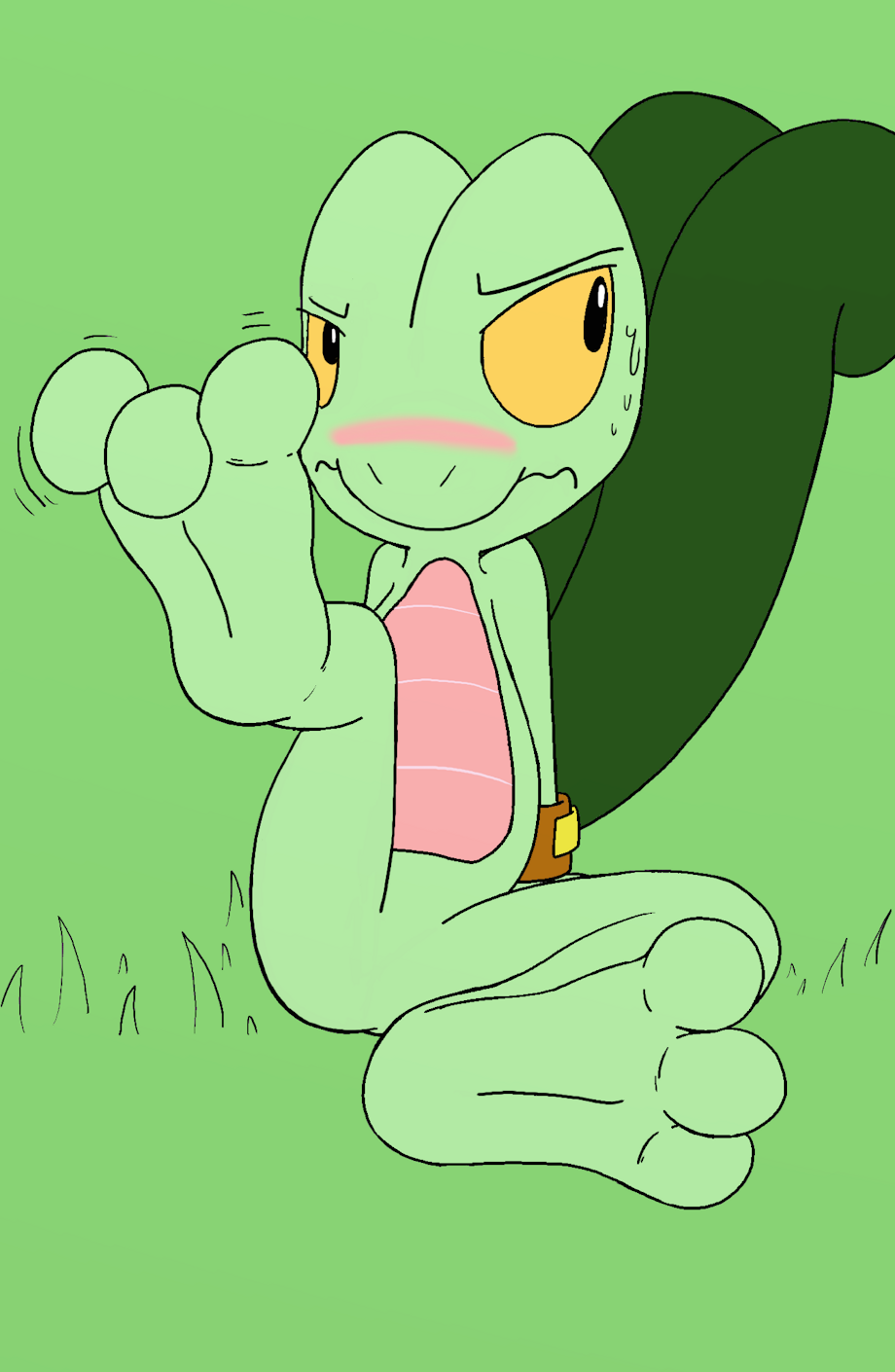 Here's the very first picture of Treecko I've uploaded back on DA ahowing off his feet to a random trainer. This isn't an ordinary Treecko though. This is an Unusual Pokemon (I made it up. There's nothing canon to the Pokemon lore about Unusual Pokemon). I'll get into the details of Unusual Pokemon for a later Pokemon post, but here he's trying to get a human to like his big feet.
