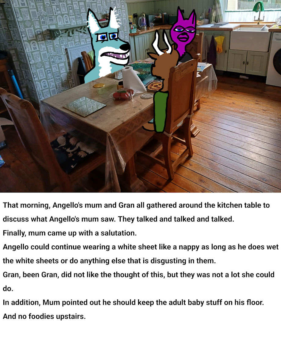 But then the little cub gets into a babyfur situation when he realise he can tie a bedsheet like a nappy.