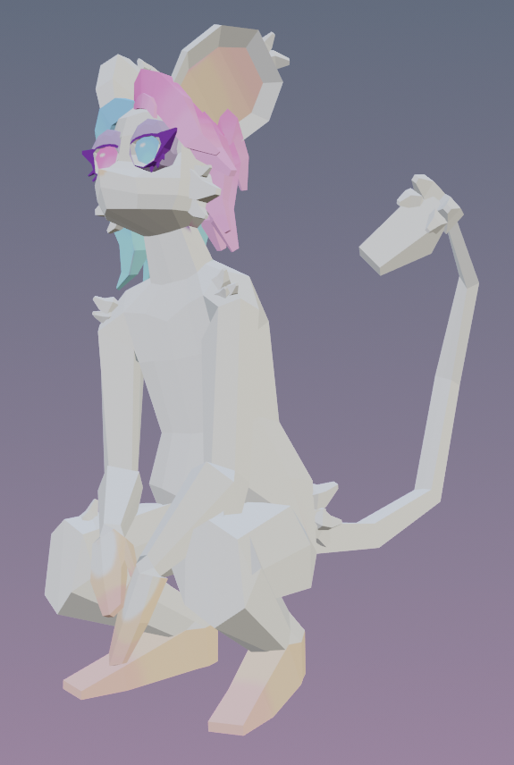 Another quick model, this time it took 3 days. It's not meant to be perfect, just an exercise for the high poly version I want to eventually make (March edit: I lost interest in VRChat so the second model most likely will never happen)
