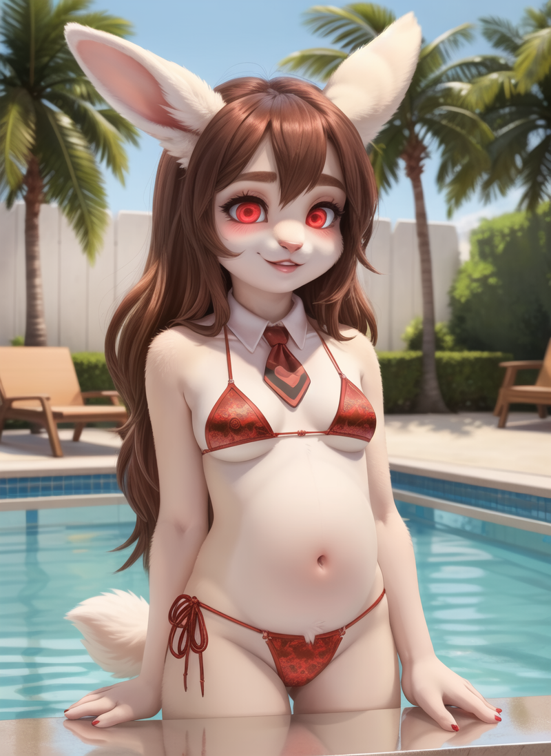 1girl, smile, lips, red eyes, (glowing eyes:1.25), anthro, medium hair, furry female, rabbit, copper hair, snow bunny, rabbit, rabbit girl, rabbit ears, rabbit tail, white fur, female, medium breasts