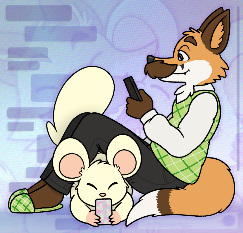 Today's Effses' birthday! Just a lil doodle of us hanging out and chattin' on our phones. It's a nice lil friendship just enjoyin' each other's company with fun lil things to talk and laugh about. Always good to appreciate the cozy times we get together all year long. nwn Squeak!