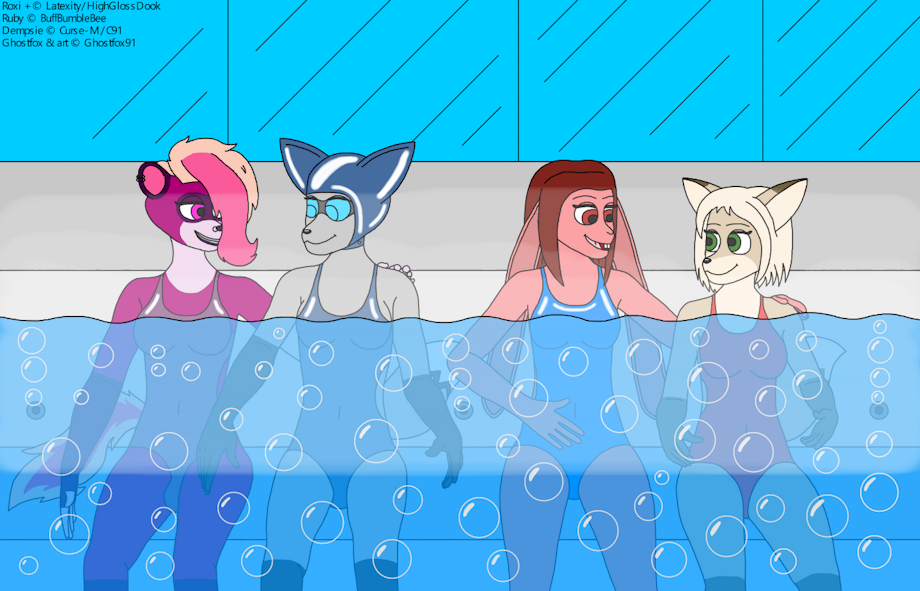 A picture featuring some amazing characters from my favorite artists. I highly recommend you check them out! I always wanted to draw a hot tub scene, so here it is. I hope you all like it.