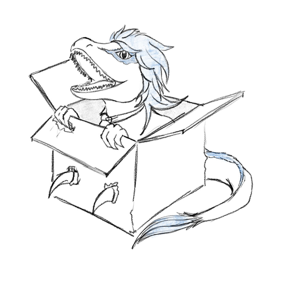 I watch my friend stream on Twitch a lot, and I thought I'd have some fun and sketch their raptor OC in a box. I think it came out rather nice.
