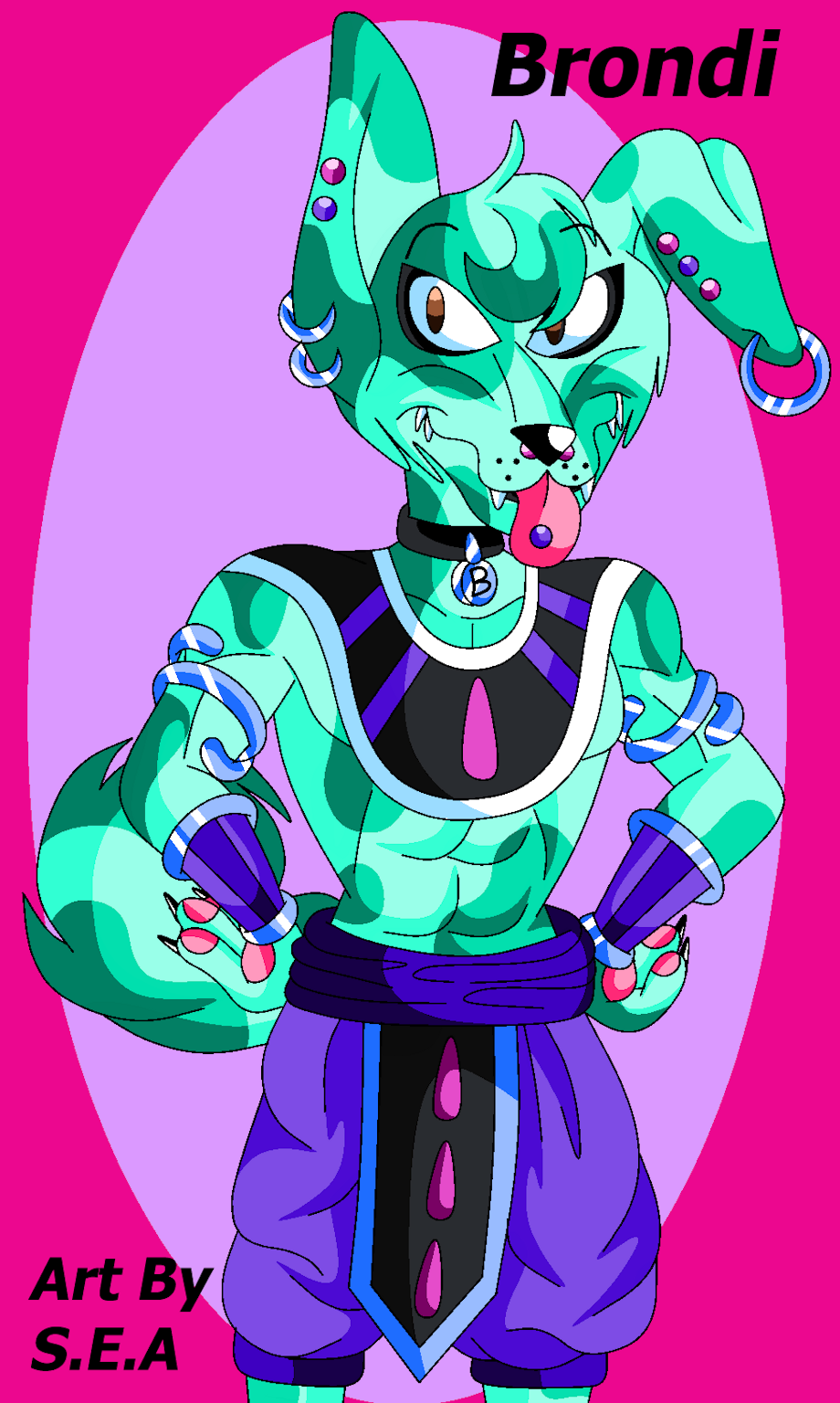 This is my Dragon ball super fan character Brondy (pun on Brandy the alcohol) he's a god of destruction (of what universe I'm not sure yet). He has a huge crush on Beerus.
