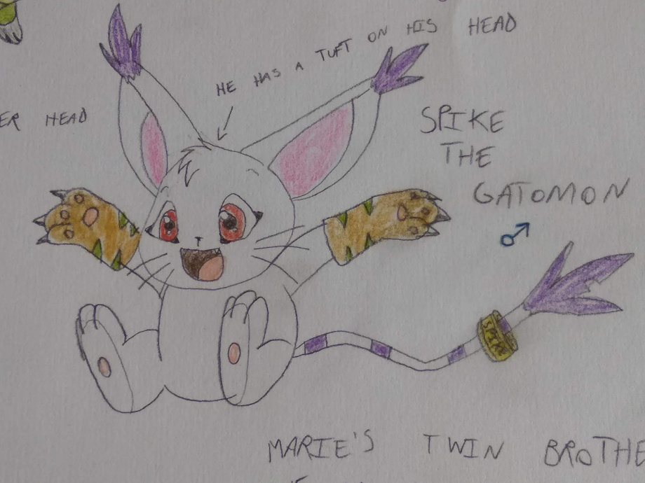 He has yellow gloves, he has red eyes. He looks like Veemon.