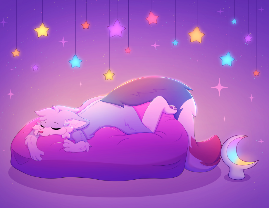 A little eepy pubby sleeping under some colorful stars. I wonder what she's dreaming about?