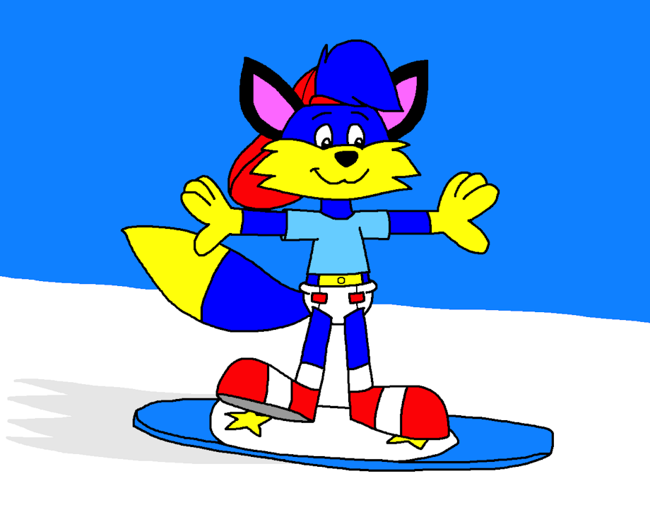 Alex the Fox Ride on a Snowboard