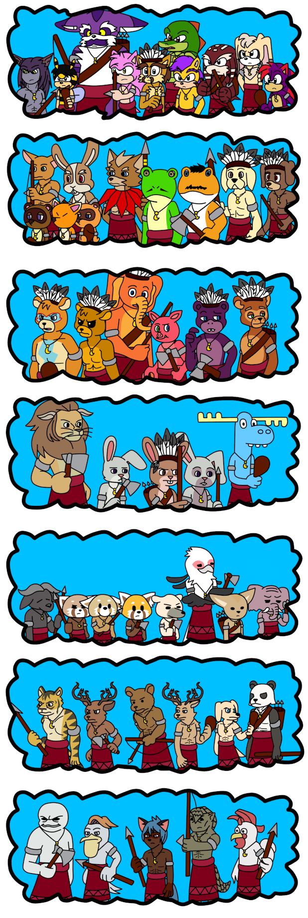This pic is a collab I made with my friend sirinathehedgehog. This is a comic that came to mind based on an idea I had for a fic from another fandom where it would show what it would be like if the characters of a fandom x lived in a tribal environment. Also, this is a crossover comic between Sonic The Hedgehog, Star Fox, Happy Tree Friends, Zootopia, Aggretsuko, Beastars, and BNA Brand New Animal . Although there are other fandoms included here. This is the fourteenth page.
