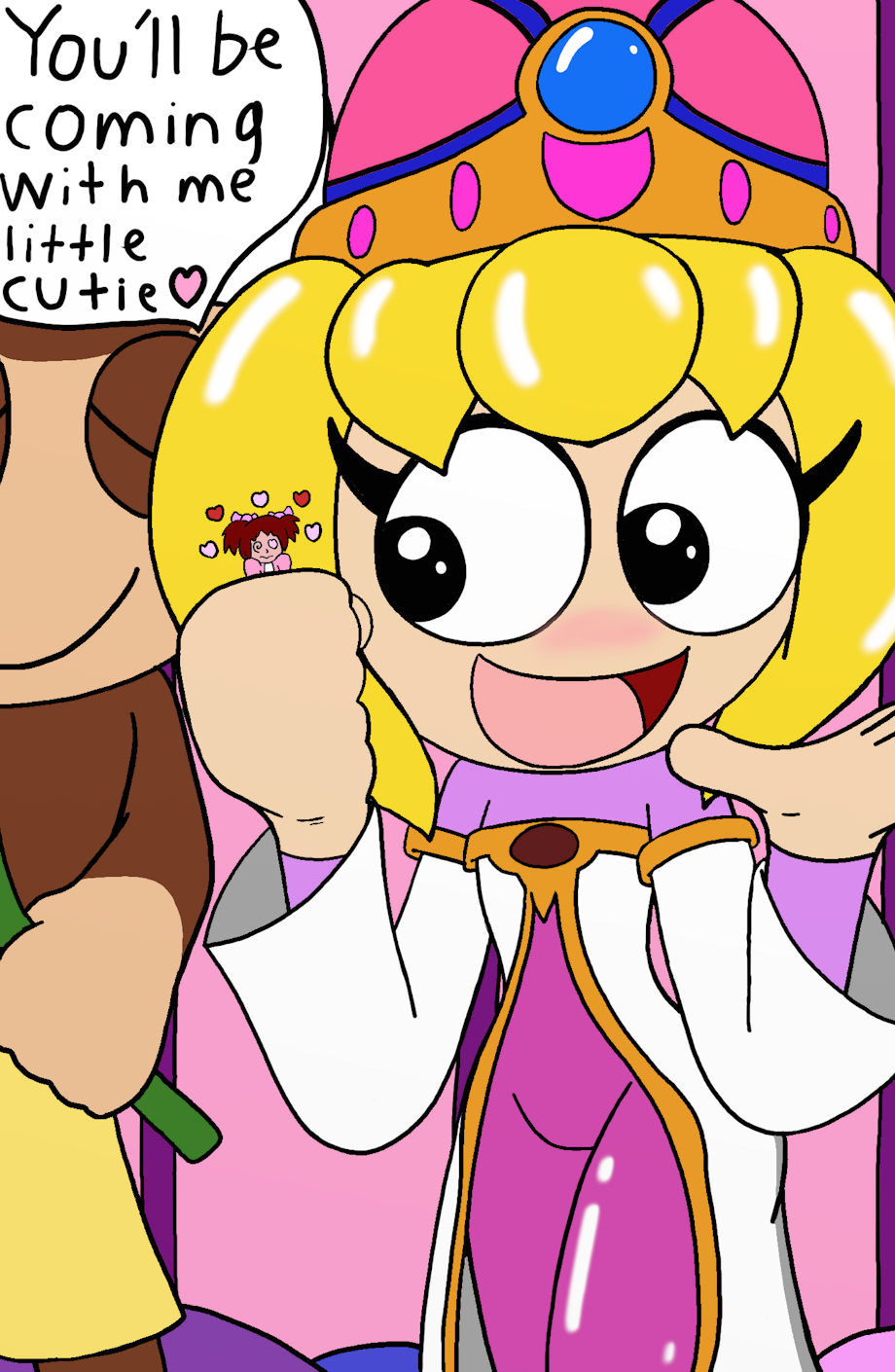 Pink is about to put on a special concert for the monkeys, her leader, for Monkey Blue (her love interest) and the humans will will be mind-controlled upon viewing it. As a matter of fact, they don't have to watch it since the wavelengths from the broadcast will control them regardless. She has her monkey servants go and prepare. After mind-controlling Yumi she takes her with her onstage to show her and the world that she failed to save them.