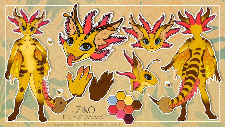 Reference sheet of Ziko for @Skittlecoon (TG)