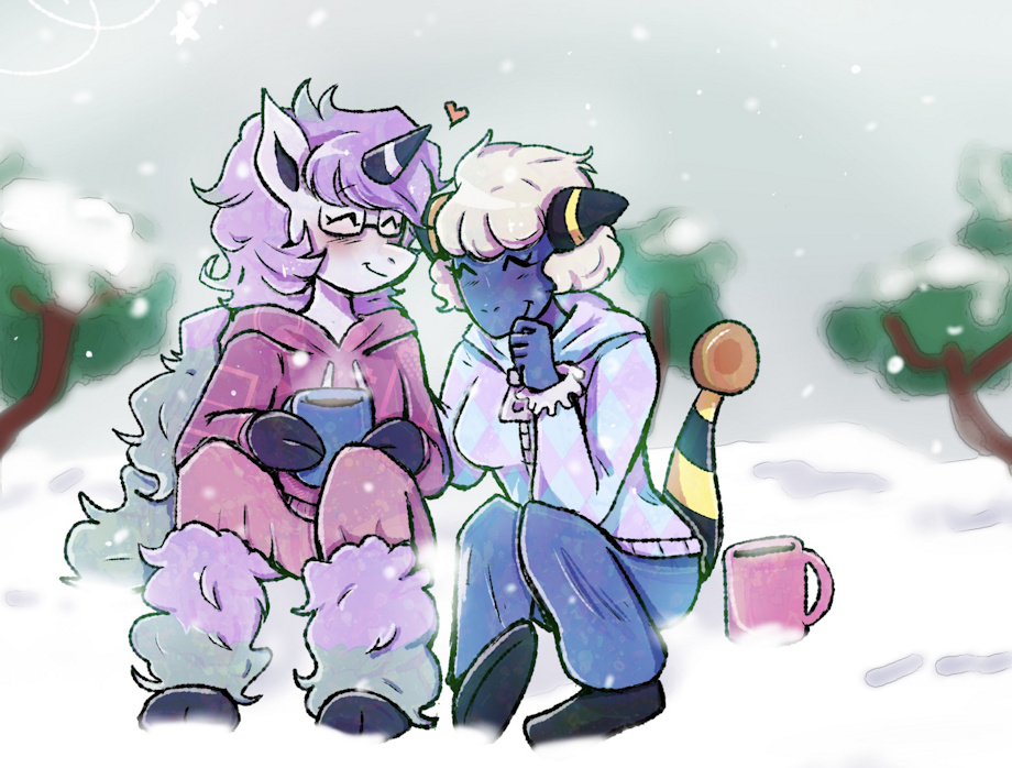 The weather is getting very chilly and snowy, with Mocha and her bf Sparkle wanting to go out an enjoy the sight. A sweet and wholesome moment of a shy couple sharing hot cocoa and gazing the snow shrouding the land, what more could they ask for?✨