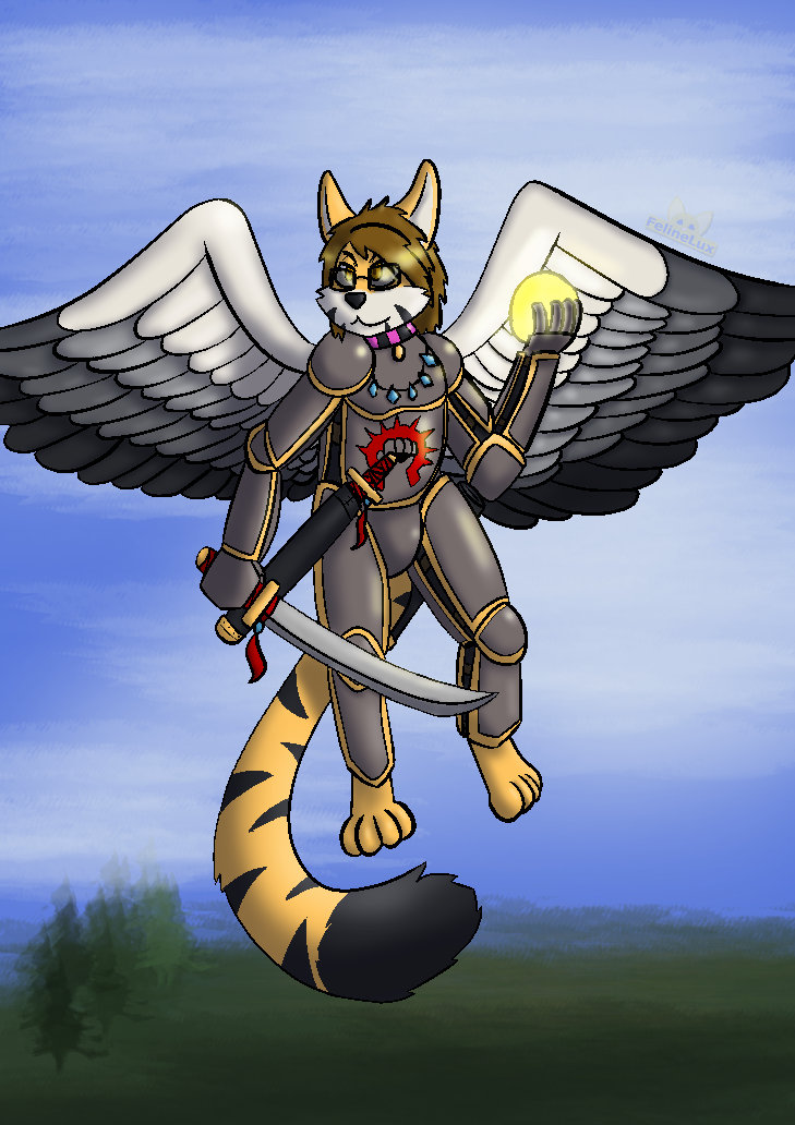 Commission for Minime of their character themed after feather the redeemed from Magic the gathering