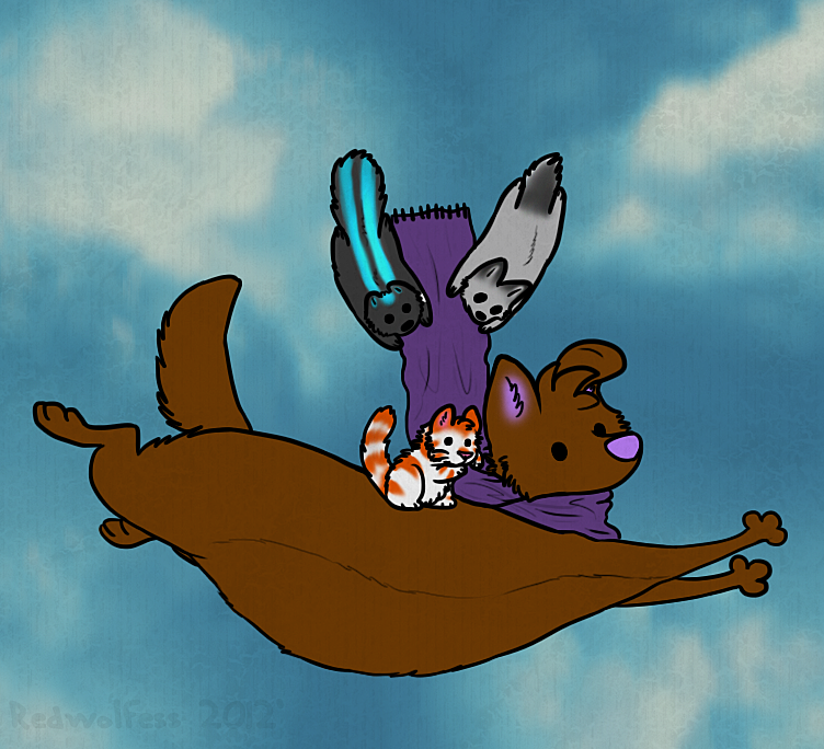 fur flap/folds like...flying squirrels? apparently I has stretchy powahs...next time will get mini parachutes or seat belts or something ;^; nu sure how well scarf will aid in all the chibis staying attached...much less flying so much as falling...redchibi is a bit too fluffy. :< nu worries chibi frands, aims at a pond or a person or something to cushion fall. nu gon' lose nu chibi peeps.