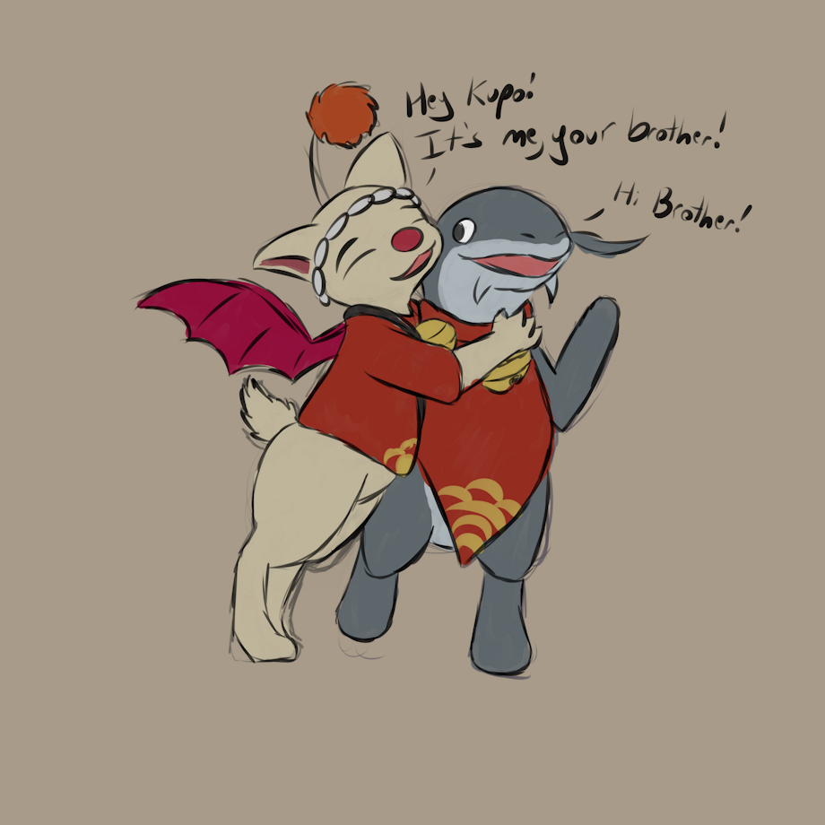 Fish is still oblivious to whats wrong with his new tea recipe.Kweh Kupo.