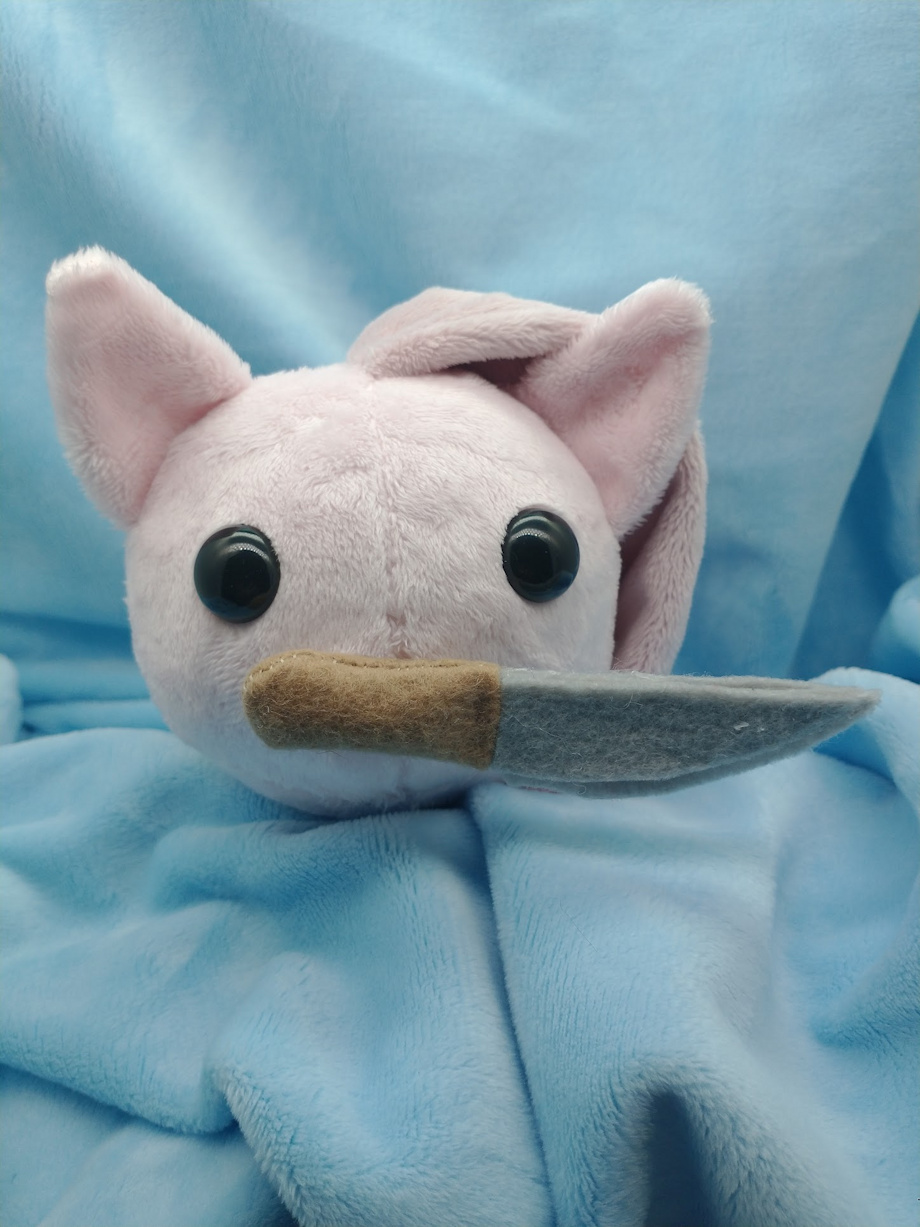 Muderously adorable! One of the "Loonakit" blob-plushes I make, this one has a magnet in her mouth and on the knife handle, so she can hold her weapon. (Already sold, sorry!)