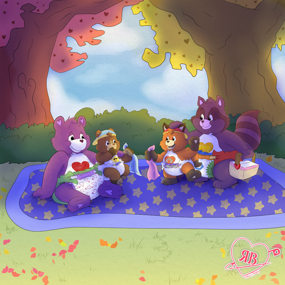 Here we see Cool Heart Bear and Trickshot Fox are havin' a lil picnic with me an' Brightheart to celebrate the lil fox' bday~