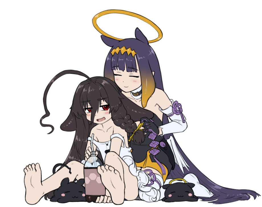 Awwww, an adorable eldritch(?) flatty meeting! The Takodachi similarity (read: exact match) is super bizarre but lead to something adorable, so I approve! Ina's smiling face as she braids Whydah's messy hair is so wonderful! Love her sweet and serene energy. Much the same, Whydah blushing and not looking ENTIRELY displeased with the situation while she enjoys her big thing of soda is super cute itself! Nice bonus feet, too! Definitely great to see both of them!