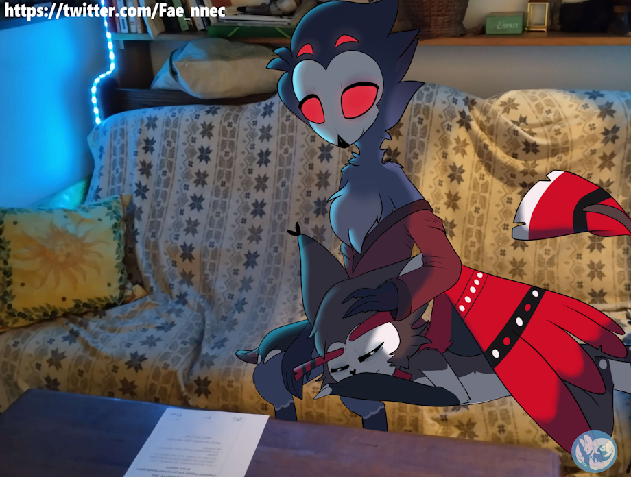 *nods* Tuxedo Cat for base form and coloring, Great Horned Owl for forearms and hands (big old claws!), wings and literal tail-feathers of course and those gigantic eyebrows.