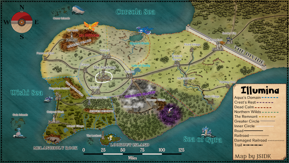 Please keep in mind this version of the map contains spoilers that will become apparent when the appropriate story chapters have been written. Non-spoiler version here: https://inkbunny.net/s/3201908