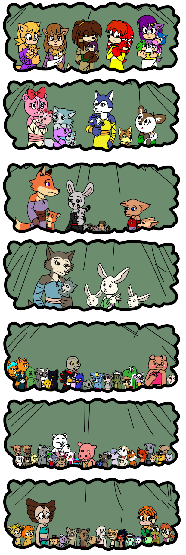 This pic is a collab I made with my friend sirinathehedgehog. This is a comic that came to mind based on an idea I had for a fic from another fandom where it would show what it would be like if the characters of a fandom x lived in a tribal environment. Also, this is a crossover comic between Sonic The Hedgehog, Star Fox, Happy Tree Friends, Zootopia, Aggretsuko, Beastars, and BNA Brand New Animal . Although there are other fandoms included here. This is the fifteenth page.