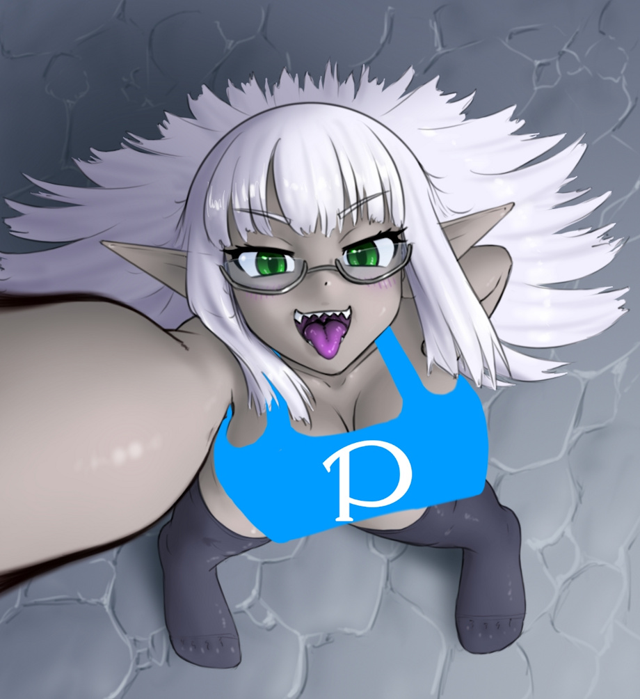 Technically a relatively simple piece in theory but that shading and lighting and what have you took a long time for a reason, ahahahaha. The atmosphere created from that alone is pretty neat, with the harsh dark on one side as she lifts the viewer up. Definitely a monstrous vibe from her sharp teeth and purplish tongue. I like her draped out hair in the back as well.