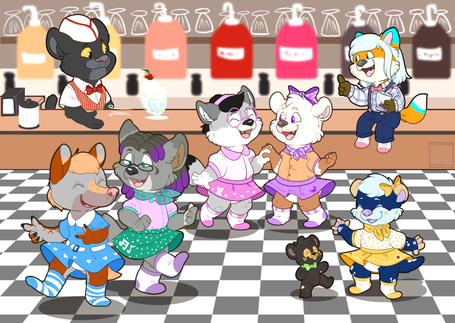 A few days later the cubs gathered at the Malt Shop. The jaguar was pretty happy to entertain all his cute cubs, and the cubs were excited to be able to stay up late for a party. All had taken log naps today hoping to be able to stay up until the dance ended at 10PM! A super late time for such little cubs.