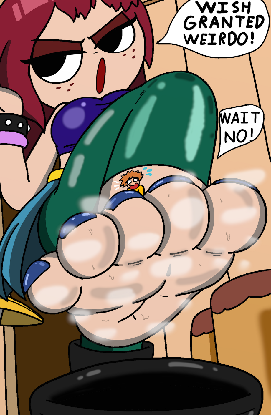 Scott wanted to get closer to one of the girls and by close he meant trapped inside of one of their shoes so he decided to ask the very one who thinks he's a weirdo for doing it and granting him his wish just to humiliate him.