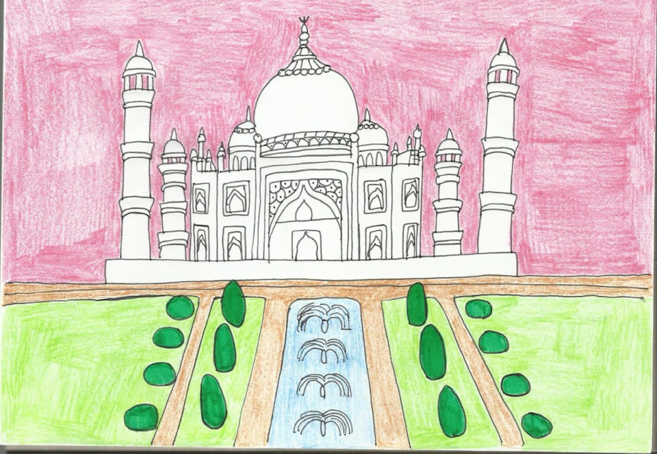 I could have made a prettier sunset colouring for Taj Mahal. Anyway, this is a remake of my old Taj Mahal drawing I drew 15 years ago. Like a 15th anniversary of my Taj Mahal art.