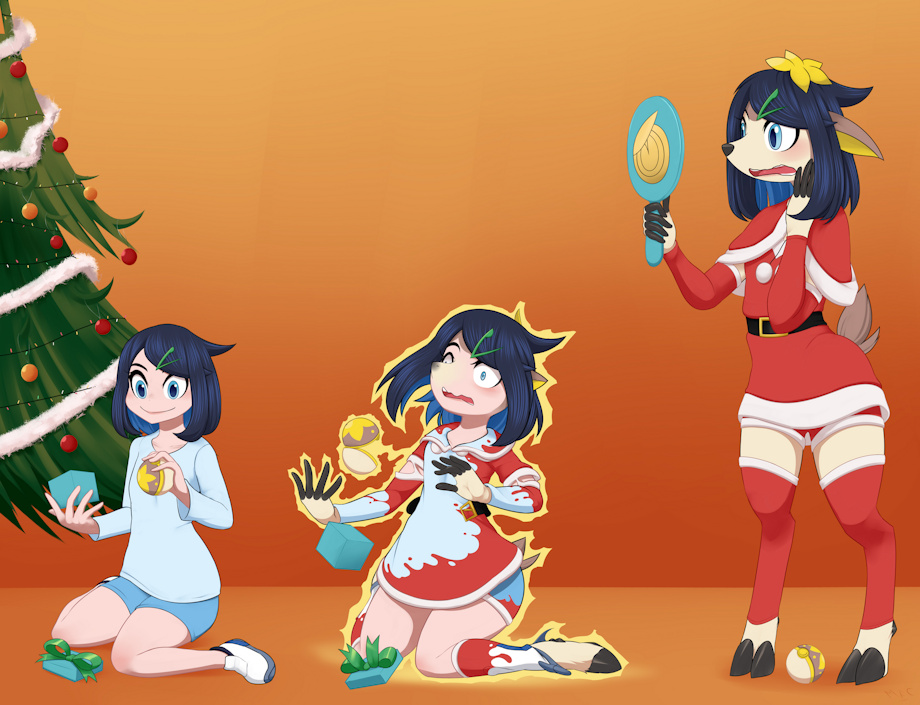 Commissioned by JWard67, Liko from Pokemon getting a misterious pokeball for christmas, causing her to turn into an anthro deerling, how could this happen? :0