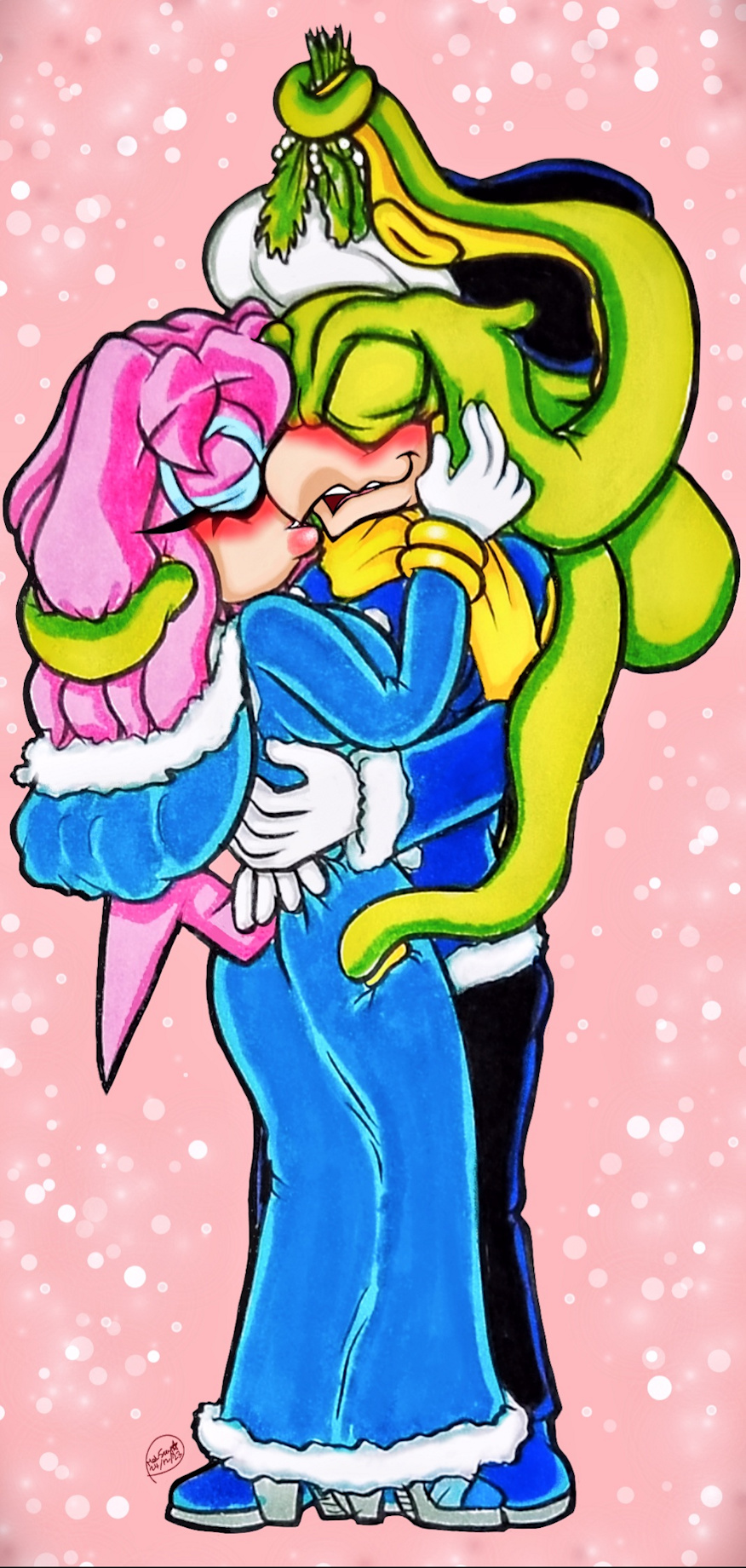 Sorry they took so long (I've been super busy...): Sky and Luke are kissing sweetly under the mistletoe (that Luke had hidden under his hat). ❤️💚
