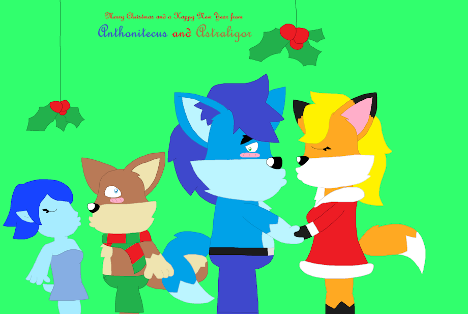 Anthonitecus is kissing Alycia under the mistletoe while Astraligor is kissing Esther under another mistletoe side by side. But the wolf man and the fox boy never let their father son bonding behind their love companions because anton and his son are always and forever be the adventurer father and son duo.