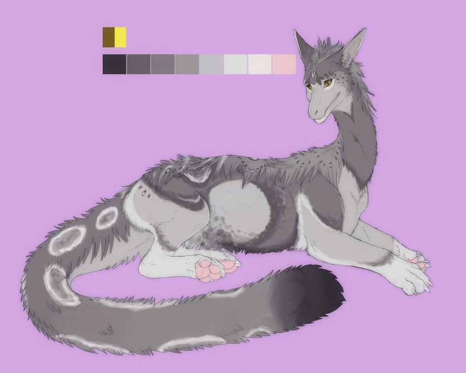 This is Kenara, a Dra'essa I commissioned from Iluq along with the rights to invent whatever story I would like for this gal. This was the very first art I got of Kenara, and while her design changes a bit later on, I thought it would be an interesting journey to follow her evolution. Although certain things change, others remain, such as the fluffiness of the tail and the plumpness of those paws :P