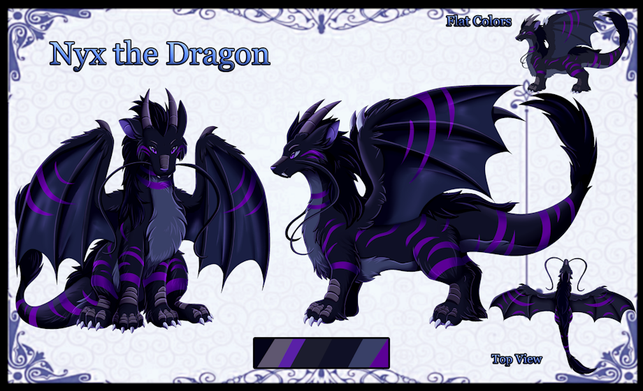 Meet Nyx, the giant night dragon! He is able to fade into the darkness and the purple markings over his body can fade or glow~ Better watch where you are going once night washes over the world... There might just be a big floofy dragon out there coming to eat you!