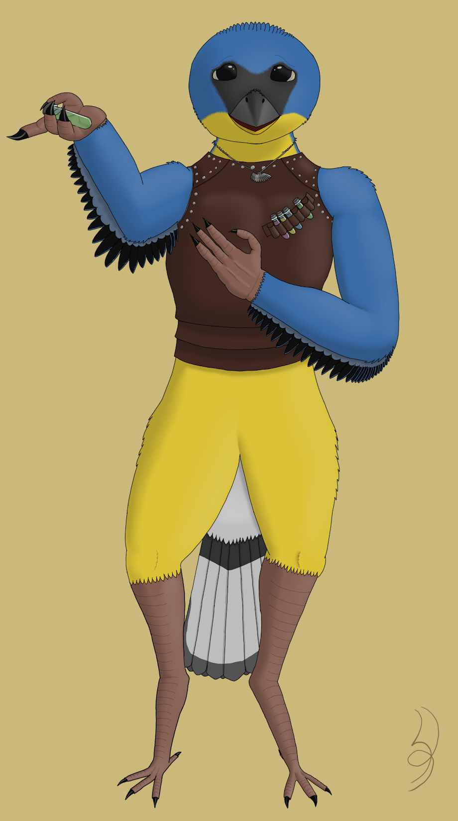 Little something I drew up for my little Alchemist bird, converted to PF2e from his previous DnD5e incarnation, now that we restarted that campaign in a new system.