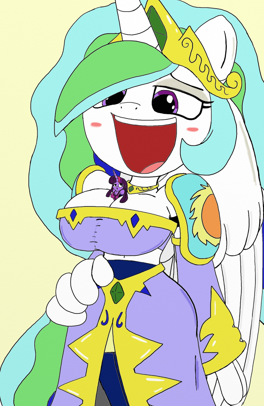 Celestia permanently rules over all of Equestria as it's goddess in this alternate Equestria. Even though Twilight ascended to alicornhood she's still under the wing of Celestia while also helping her with her royal duties to prepare for the day she one day rules if ever. She loves to tease Twilight as much as possible.
