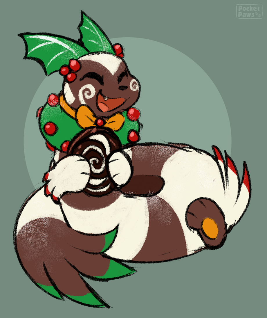 Little warm-up doodle of my Christmassy furret, Yule! :D
