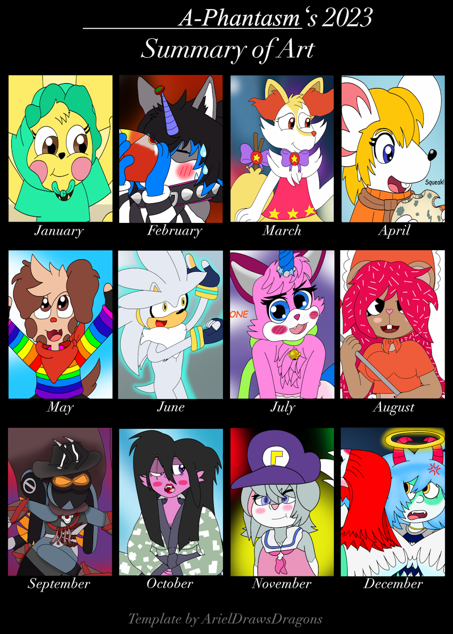 So here it is. For the first time since sometime in the last decade, here's a summary of the artwork I did for 2023. I must say, it was very fulfilling being able to do this many pictures, stepping out of my comfort zone and even doing commissions and art trades for some of my friends, which I'm very grateful for. Happy New Year and all the Best for 2024! Let's hope it's a good year.