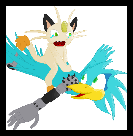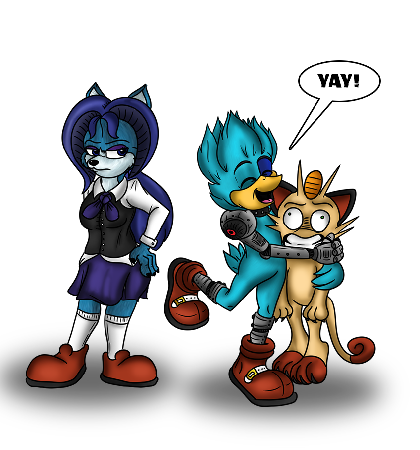 So these pictures feature Josh with his best friend Kyrochi "Ky" Razie. Ky is a blue hawk who got half-roboticized thanks to Dr. Robotnik. He also has an infinite alternate universe inside of his hammerspace of an arm, and has infinite strength. And he's also mentally broken and cannot age. But never mind about that. He and Josh were the ones who helped build their city of Buttopia up from literally a blank void. Oh, and Artemis (the hedgehog girl) is also featured in the first picture.
