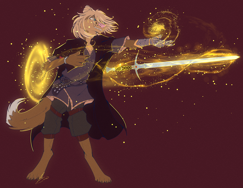 Pasha has quickly become my favorite D&D I've played. I fell in love with Mage Hand Press' 3rd party D&D book Valda's Spire of Secrets immediately. The book introduces 10 new full classes and I instantly gravitated towards the Warmage. The warmage is a caster that only gets cantrips and is designed to be closer to a martial than a caster. Here is Pasha casting his signature cantrip: Force Dart. Force Dart requires that gauntlet he is wearing and at his current level of level 9 does 3d10+5 Force Damage on hit or 6d10+5 Force Damage if he uses his Arcane Surge class ability. Pasha is a follower of the Pathfinder god Ragathiel and his favored weapon is the bastard sword. Which is why his force dart is the shape of a bastard sword. Little man can really delete problems with his cantrips. I highly recommend checking out Valda's if 5e is boring you. It brings back a bunch of fun 3.5 mechanics like Exotic Weapons for example :3.