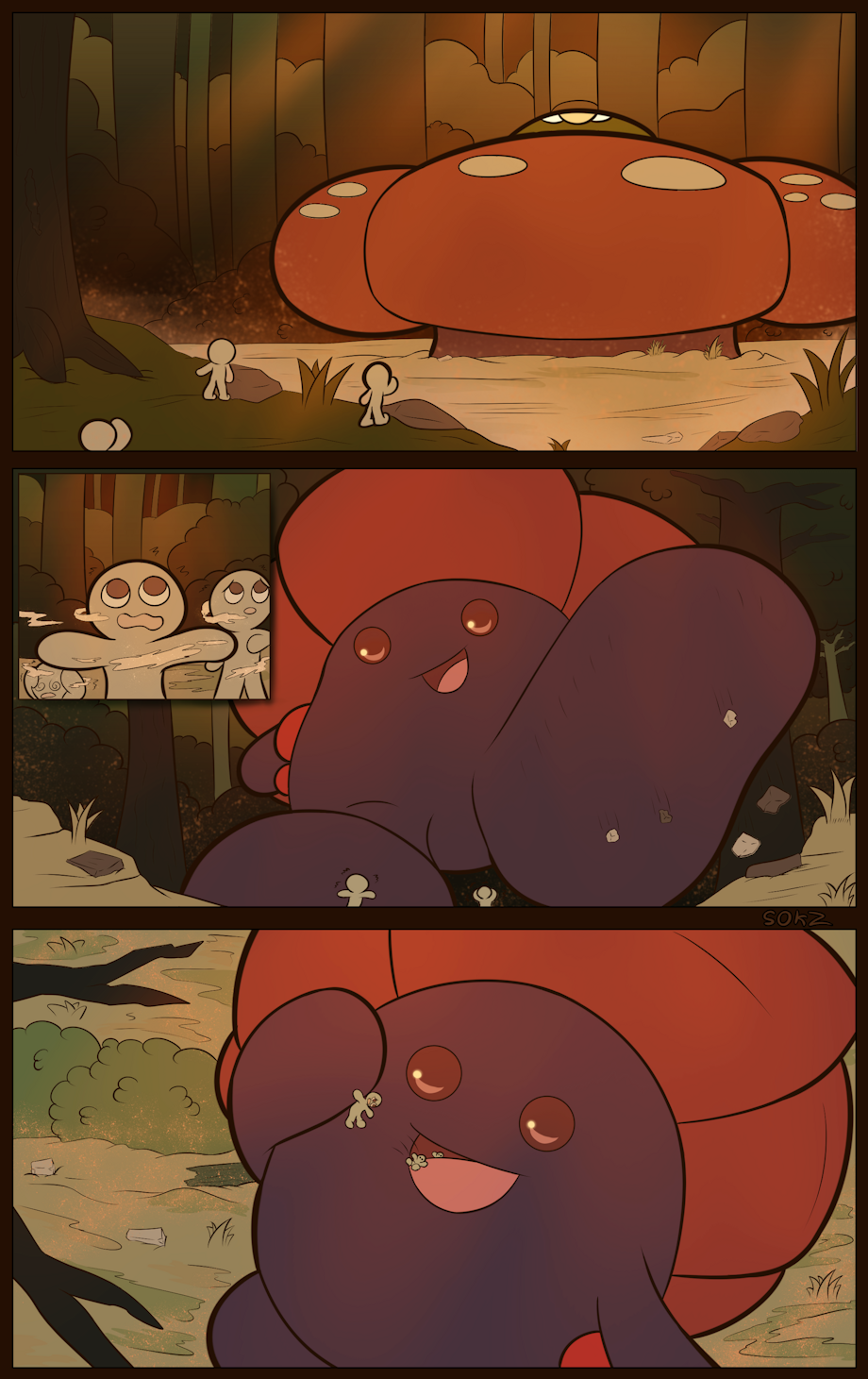 Arguably, seeing a big flower with a big pearl in top of it would make tiny people more curious to approach and climb, but they didn't even got a chance to get close enough to the big vileplume before getting paralysed by her spore~
