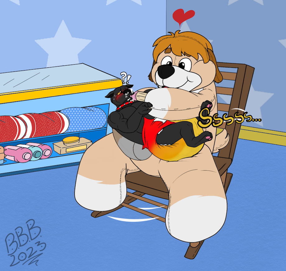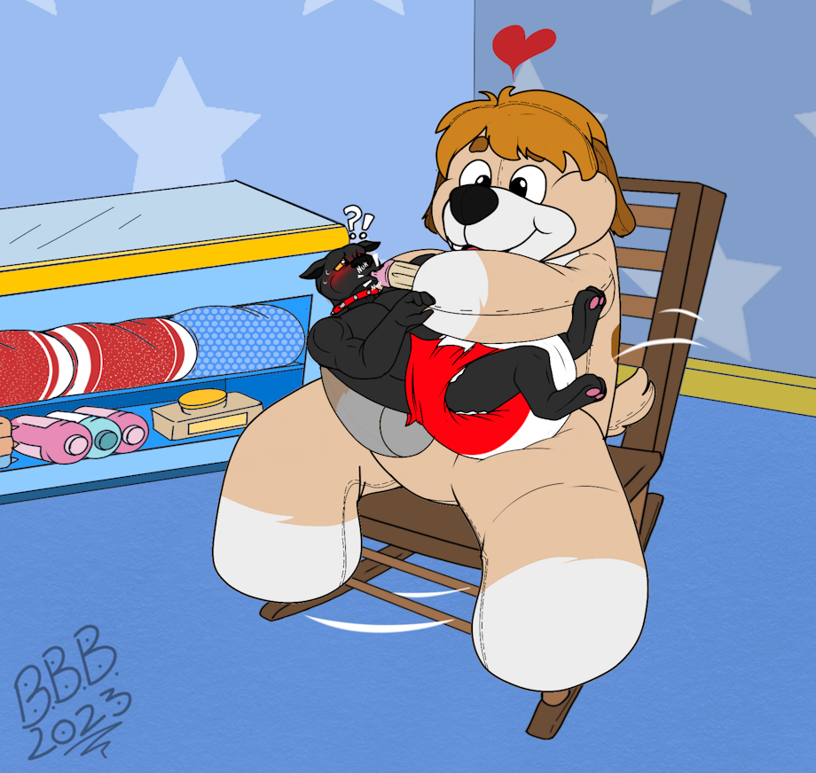Big bad dog doesn't know what to think. But he doesn't seem to mind...too much.