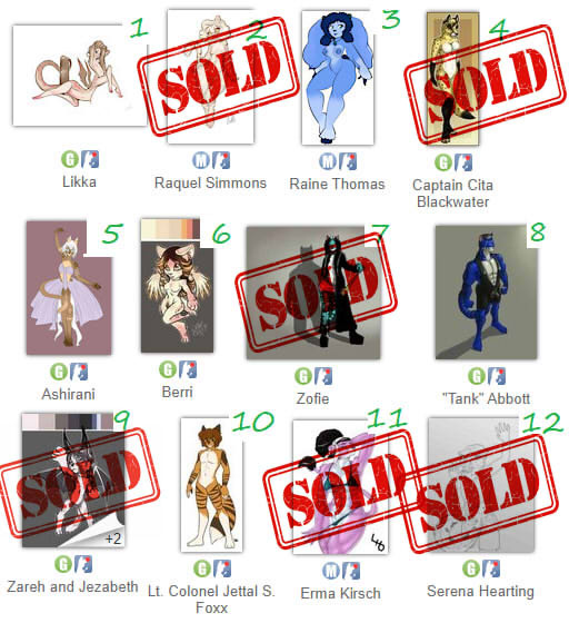 Just a reminder that I still have a few characters for sale to anyone who is interested.