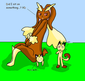 An overgrown Lopunny 'accidentally' finds Josh and DJ, and decides to use the former as a seat. As Josh is showcasing, the girl is quite heavy, while DJ looks on and actually shows concern for once.