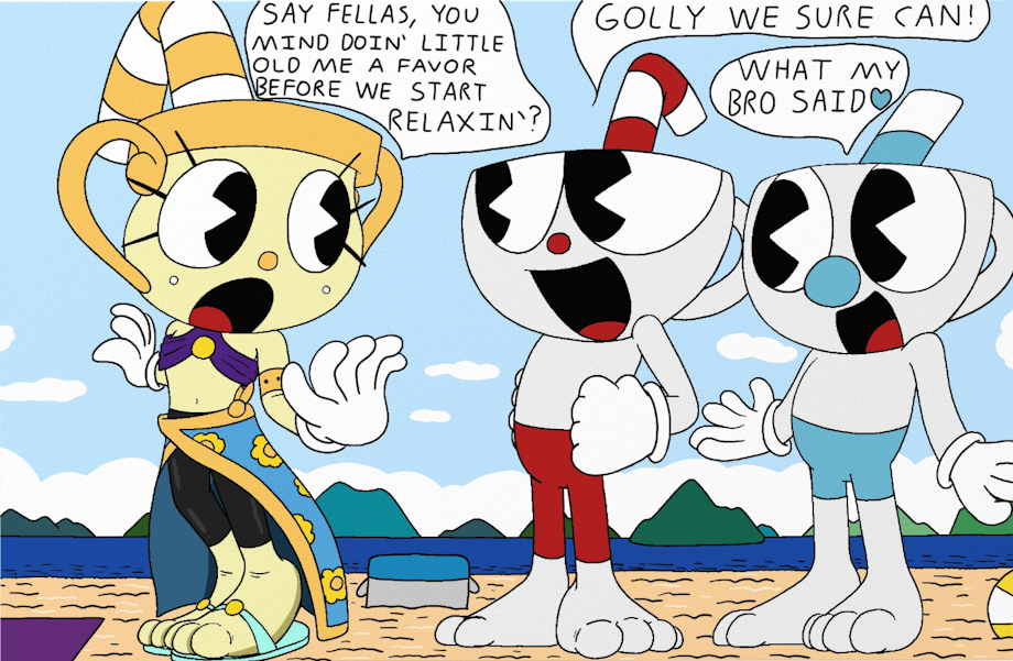 Here is another summer picture I did with the cup brothers and Ms. Chalice that I drew last summer. This is the introduction for more weirdness to come towards the brothers.